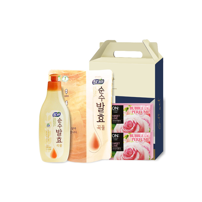LION 참그린 순수발효 곡물 용기 300g + 참그린 순수발효 곡물 리필 300ml + LG생활건강 온더바디 비누 80g x 2개 [110-212255]