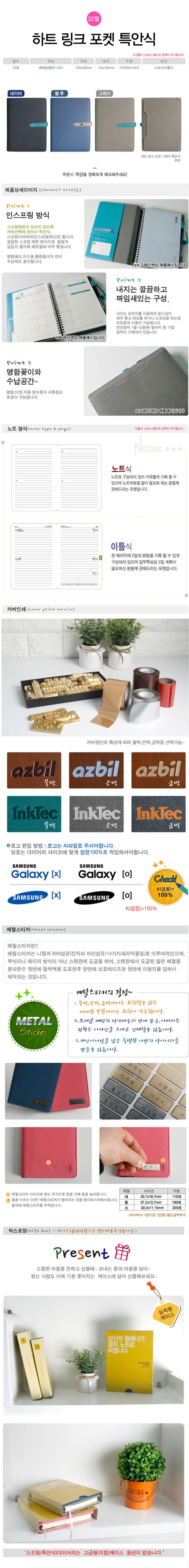 32절 하트 링크(자석) 포켓 특안식 다이어리
