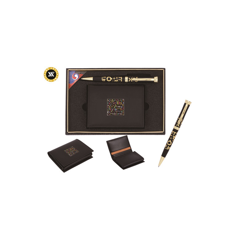 [볼펜세트/명합지갑세트] 한글4호 한글볼펜+한글자개가죽명함