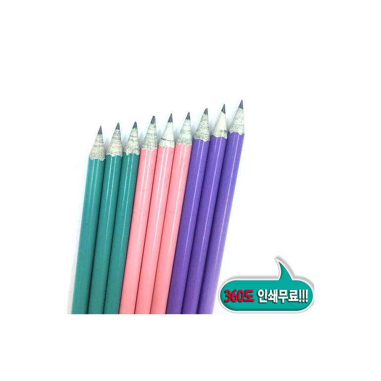 -원형 연필, 원통은 1도 곡면인쇄 (앞, 뒤 두 군데 또는 곡면으로 돌아가면서 인쇄 가능하며 양면인쇄 추가 비용 없습니다.) (*육각, 몽당 연필은 한 면만 인쇄 가능합니다.)