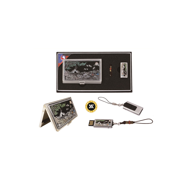 채색송학자개명함+가띠메탈자개USB 8GB