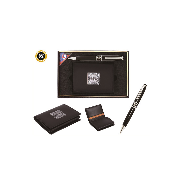 [볼펜세트/명합지갑세트] 자개프리미엄볼펜실버+쌍학자개소가죽명함지갑