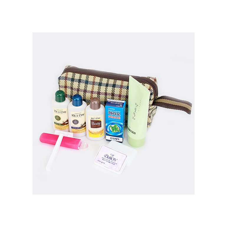 [여행용121호] 케라시스샴푸,린스,바디,페리오치약20g,미니칫솔,비누,비누곽,면도기.비타민c핸드크림,버버리가방