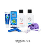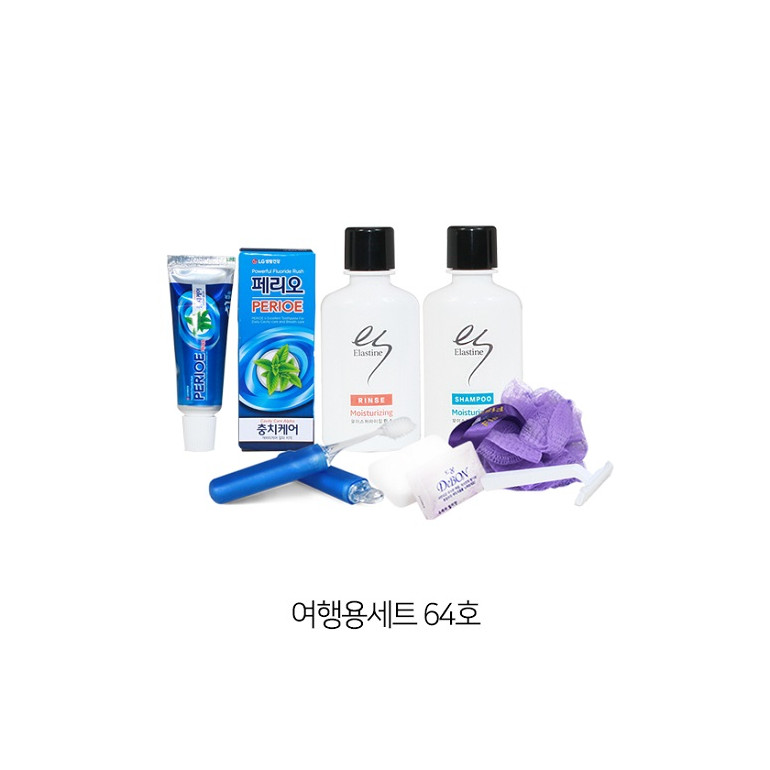 여행용64호-엘라스틴샴푸,린스,페리오치약20g,미니칫솔,비누,비누곽,샤워볼,7종지퍼,거품타올,비누,비누곽