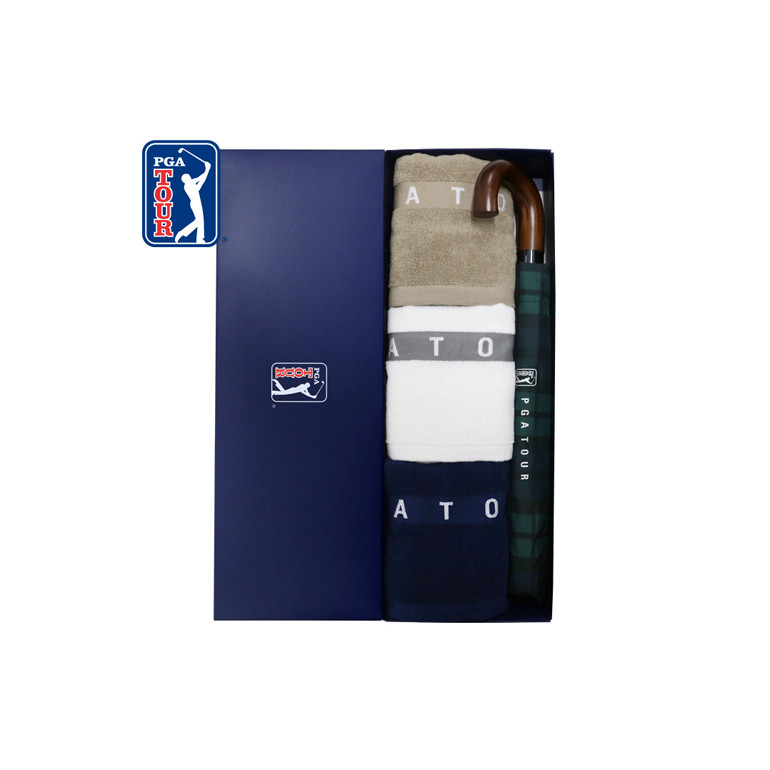 PGA 2단자동 글렌체크+130g 면사타올 3P 세트