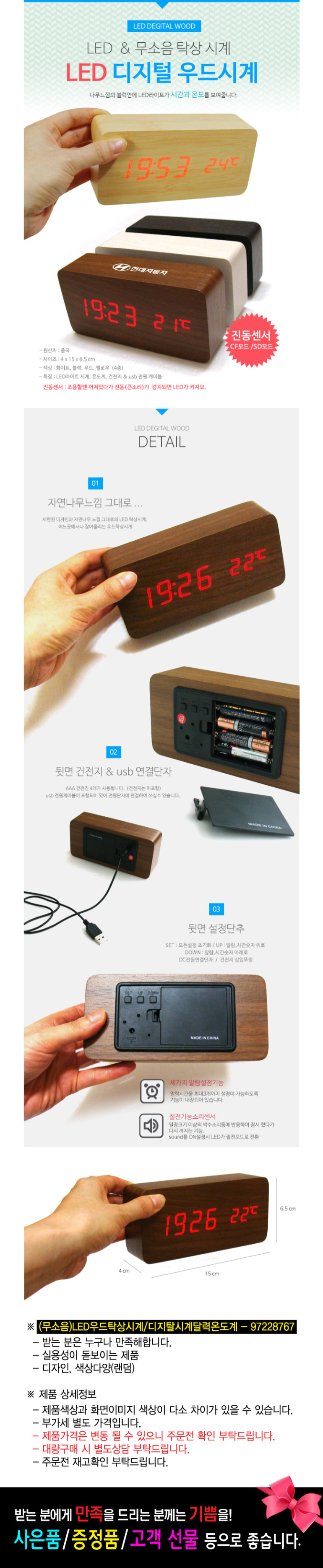(고품질)우드탁상시계달력-시계온도계 동시에탁상시계