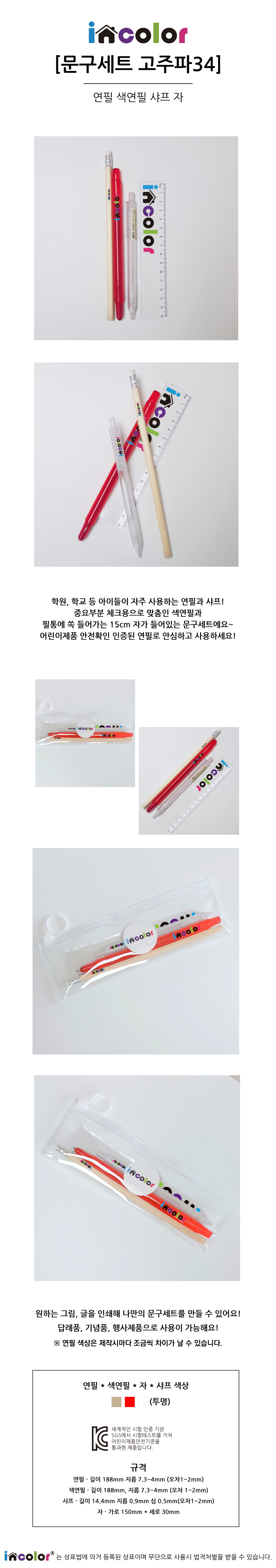 incolor문구세트 고주파34 (연필 색연필 샤프 자)