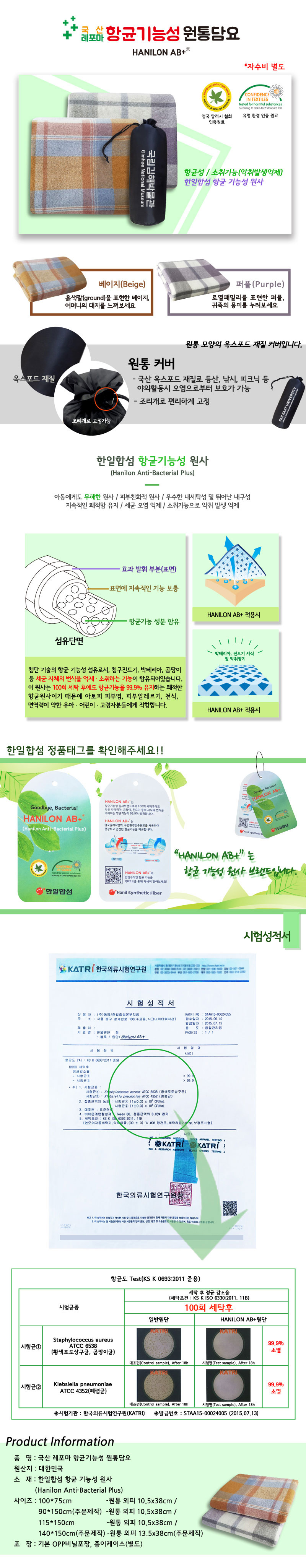 국산 항균기능성 원통담요