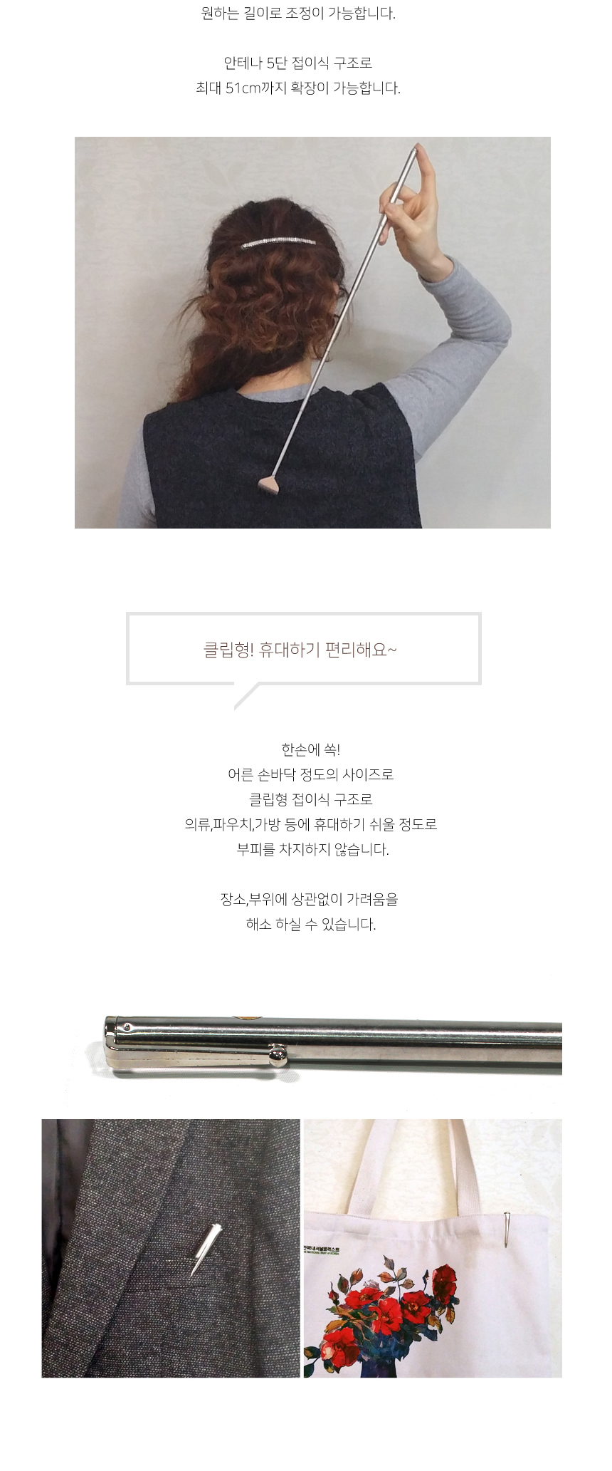 휴대용 5단 접이식 안테나 효자손