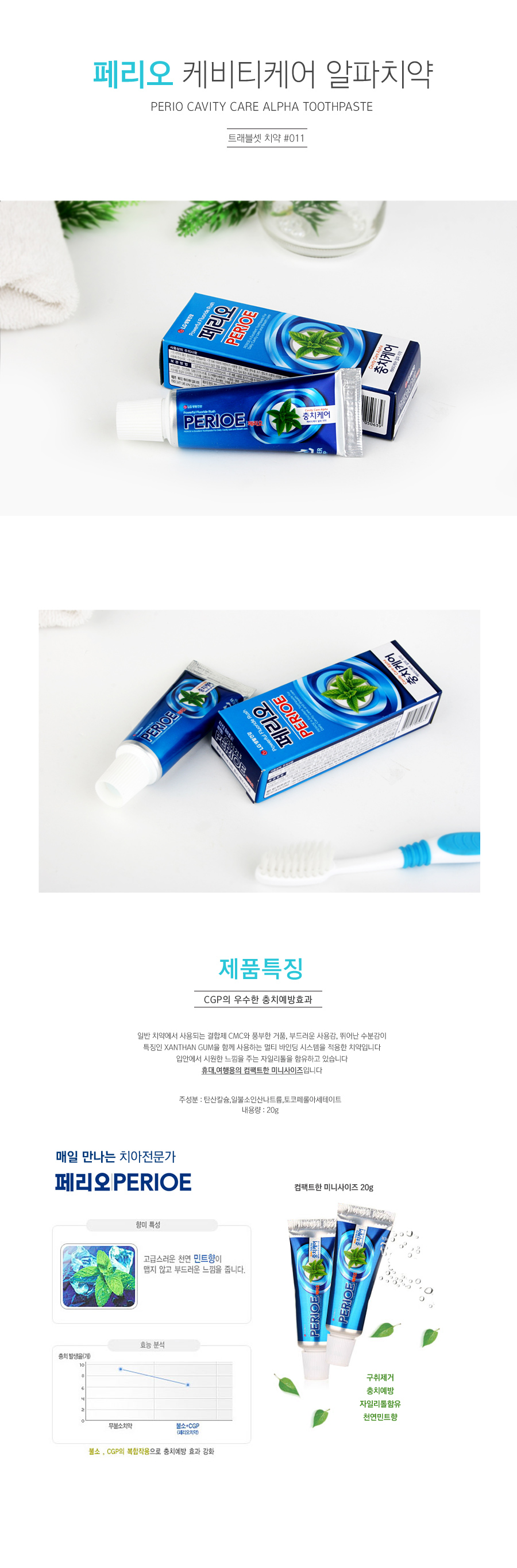 여행용 페리오치약 20g / 치실/치간칫솔/