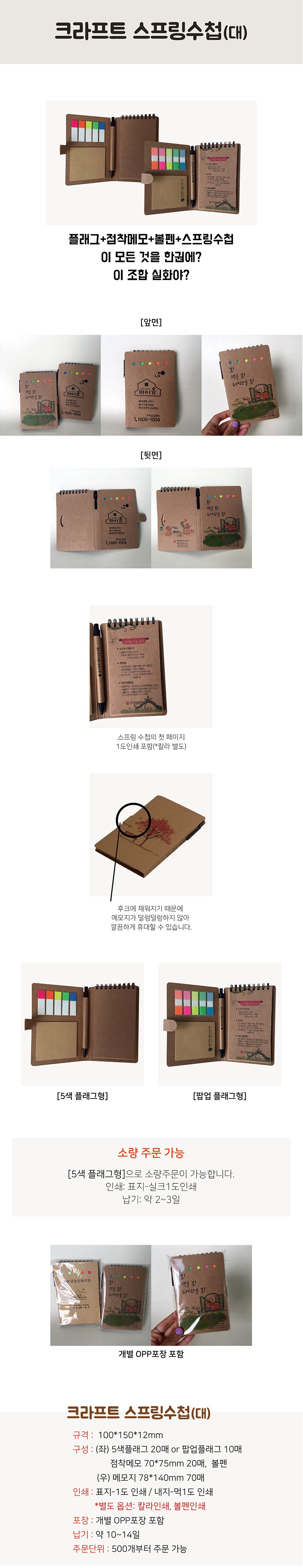 [먹1도 기본]크라프트 스프링수첩(팝업5색형)