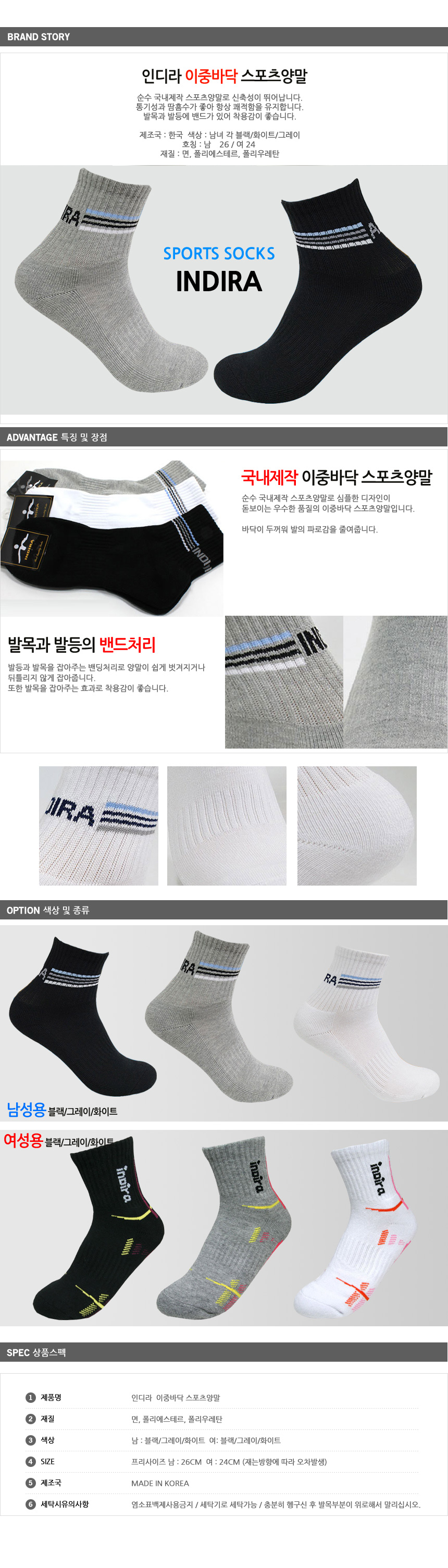 인디라 이중바닥 스포츠양말