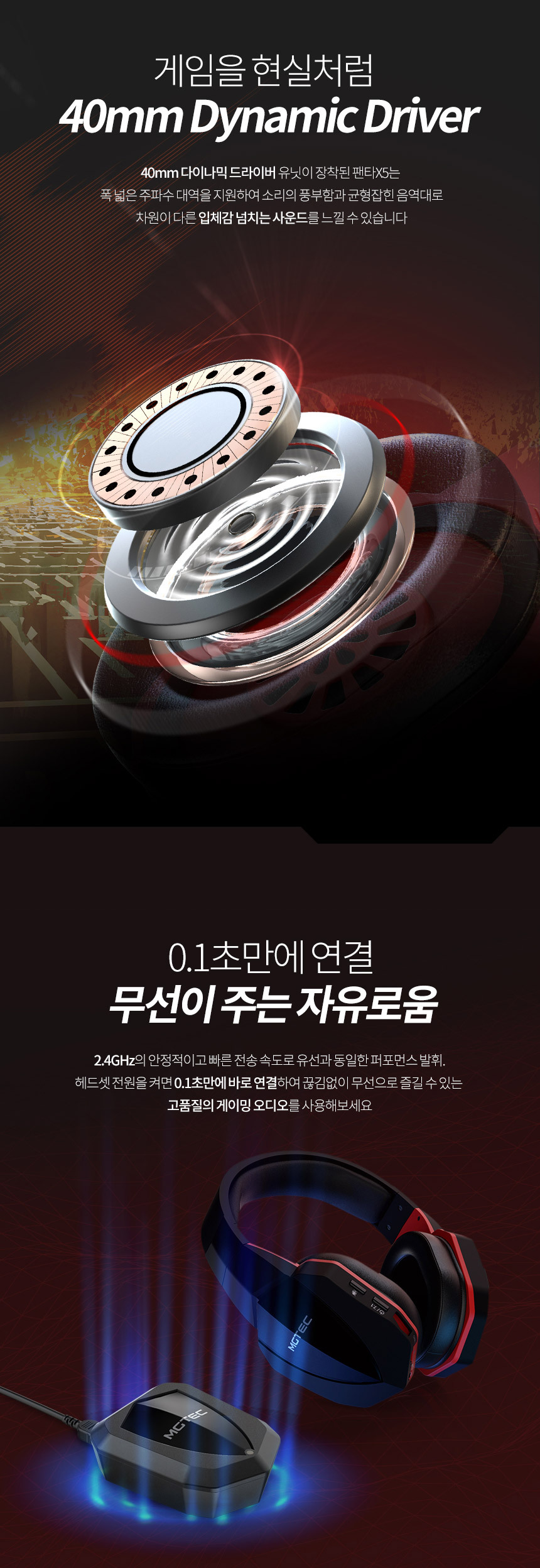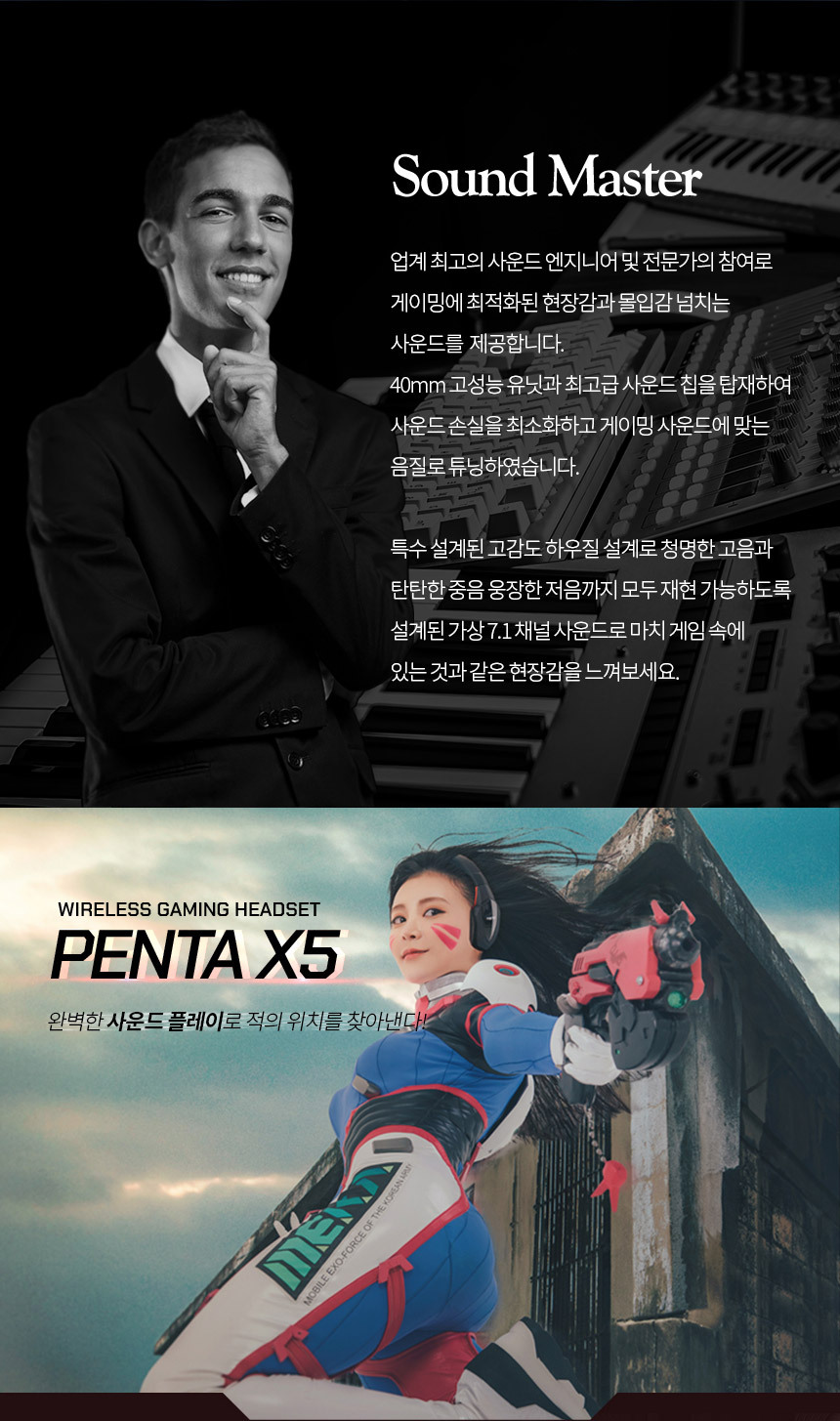무선게이밍 헤드셋 PENTA X5/7.1채널