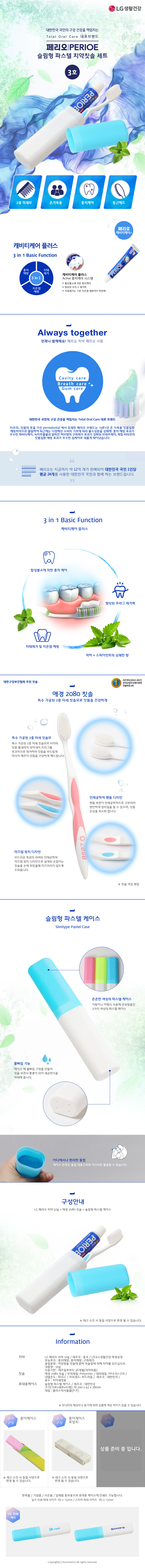LG 페리오 슬림형 파스텔 치약칫솔 세트 3호(휴대용세트/여행용세트)