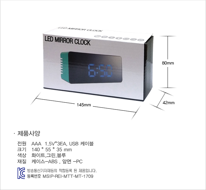 * 건전지를 사용해 가정이나 사무실에서 개인용으로 사용할 수 있는 디지털 거울시계.