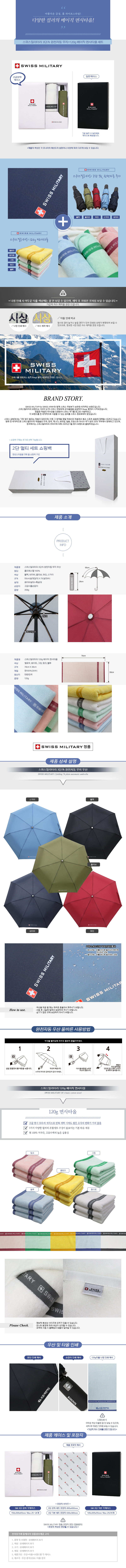 스위스밀리터리 3단 7K 무지 완자 + 120g세면타올 세트