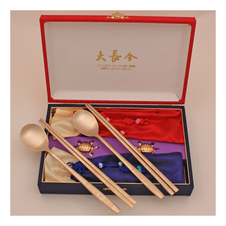 • S-9 신 대장금 유기수저세트(수저2벌+받침2+비단주머니2+비단케이스)