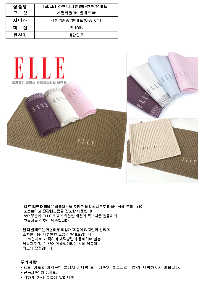 엘르 라벤더타올3매+엔틱발매트 세트