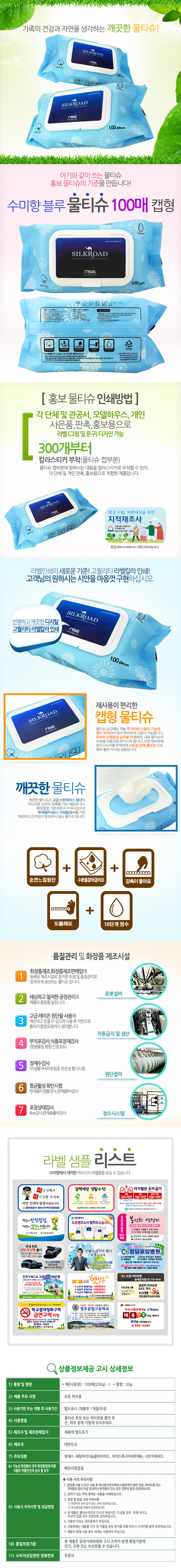베이직 수미향 블루 물티슈 100매 캡형