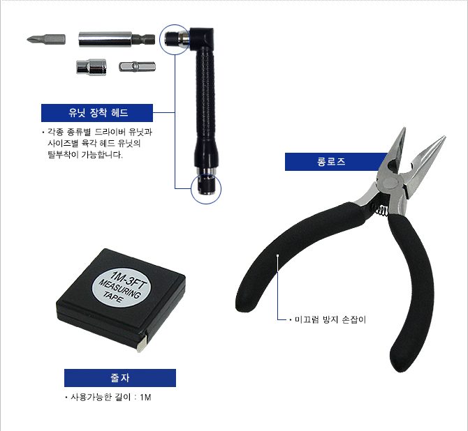 * 롱로즈, 스크류드라이버(+,-), 줄자(1M), 외 20종으로 구성