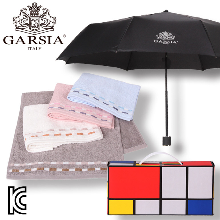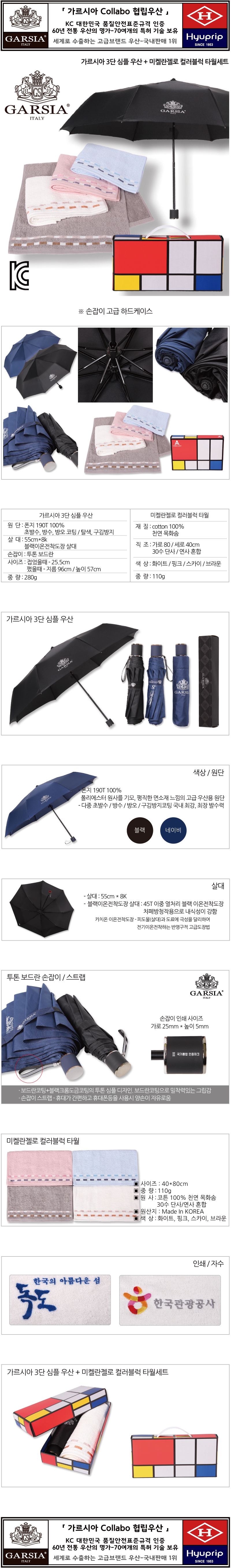 가르시아 3단 심플 우산+컬러블럭 타월세트