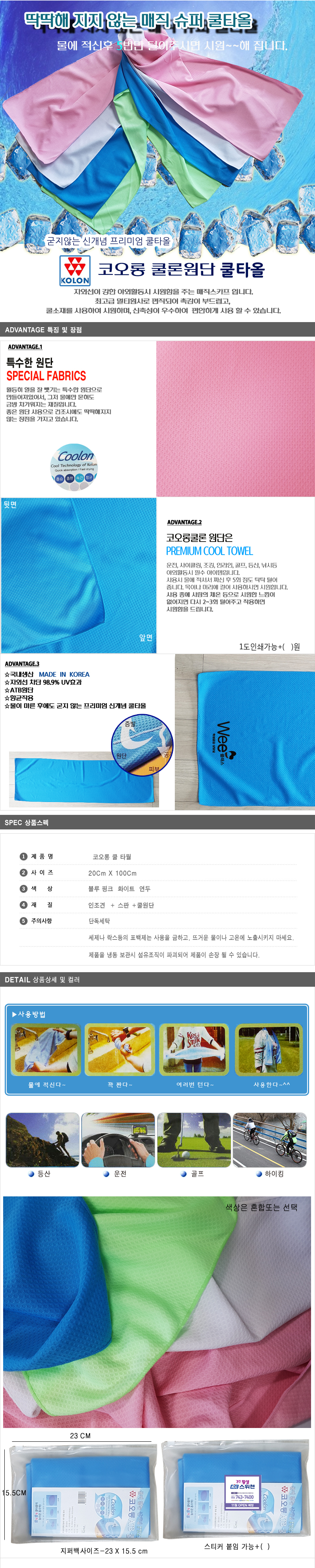 100x20cm 쿨링타올/코오롱 쿨론원단 쿨타올