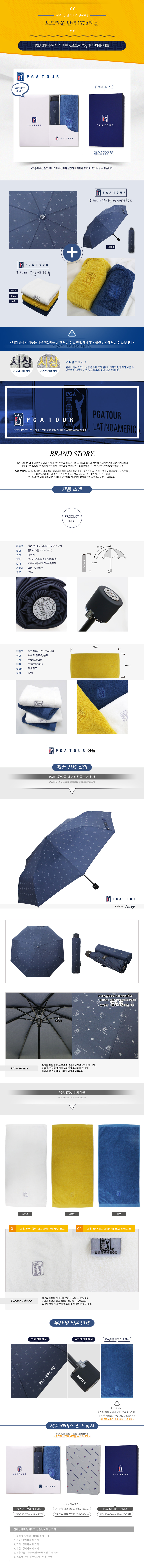 PGA 3단네이비전폭로고+170g면사타올세트