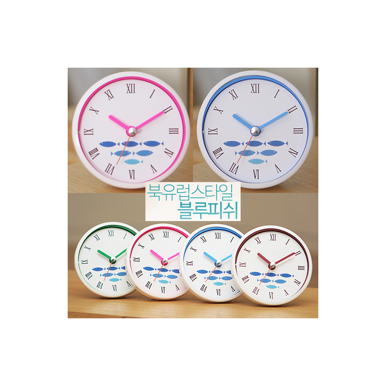 북유럽스타일블루피쉬 화이트투톤케이스 흡착방수시계
