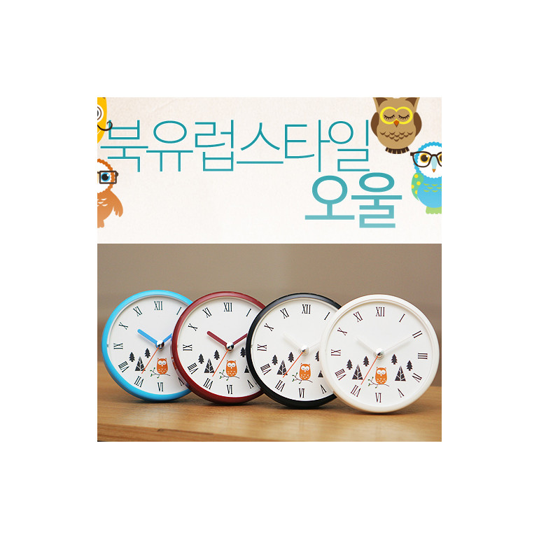 북유럽스타일오울 컬러케이스 흡착방수시계
