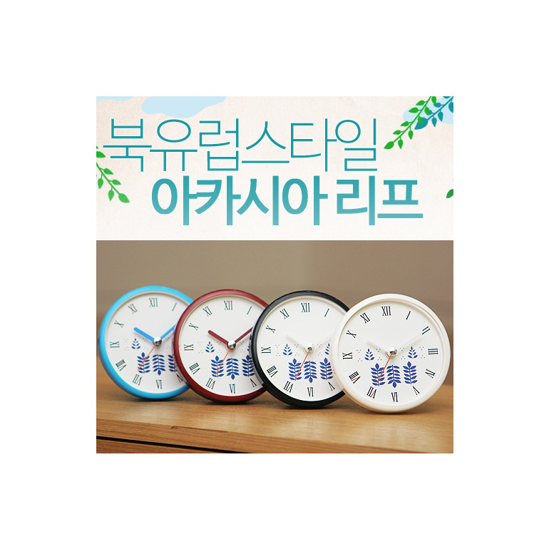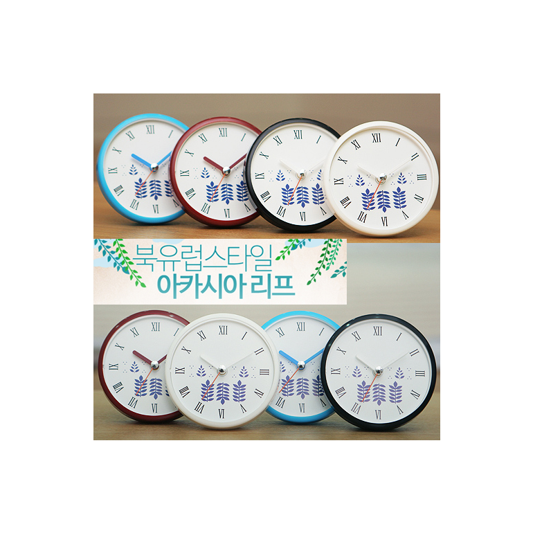 북유럽스타일아카시아리프 컬러케이스 흡착방수시계