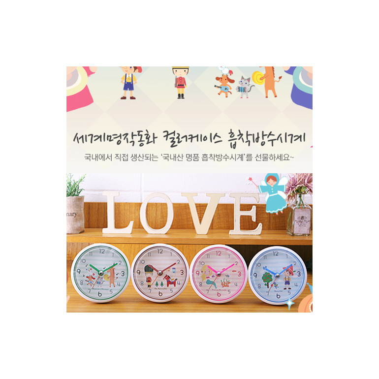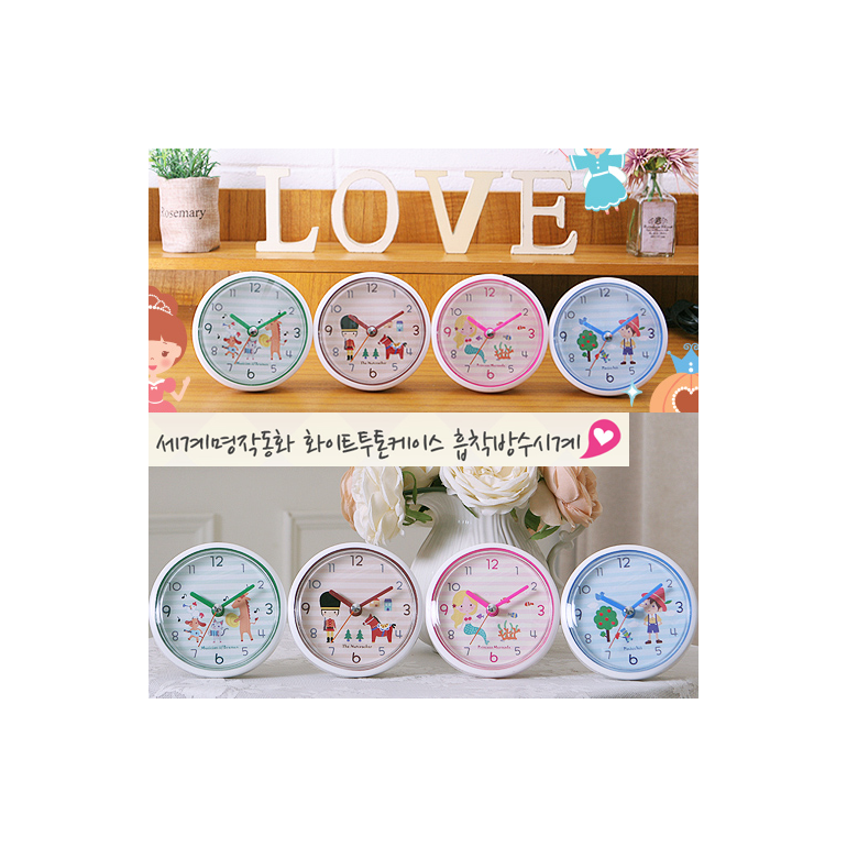 세계명작동화화이트투톤케이스 흡착방수시계