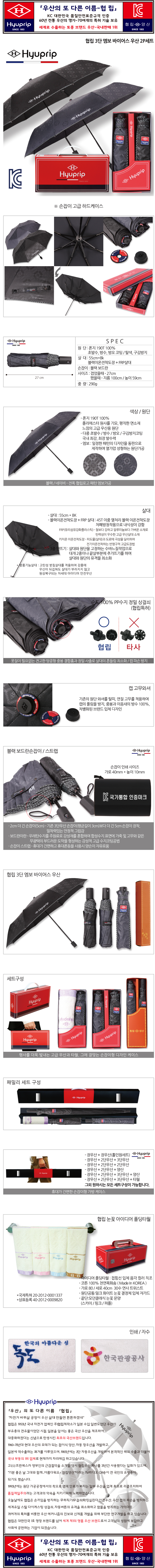 협립 3단 엠보 바이어스 우산 2P세트