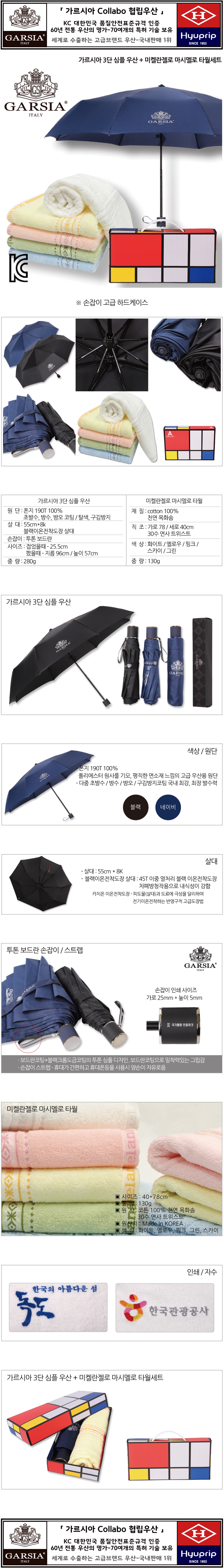 가르시아 3단 심플 우산+마시멜로 타월세트