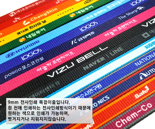 전사인쇄 릴홀더 목걸이줄 9mm사원증목걸이줄