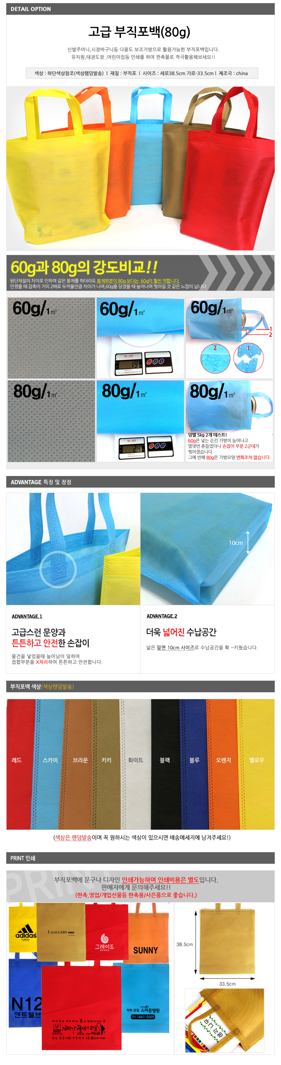 고급 부직포가방 80g /학원가방/신주머니/쇼핑백