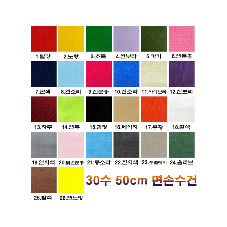 26색30수 면손수건(무지손수건)50cm