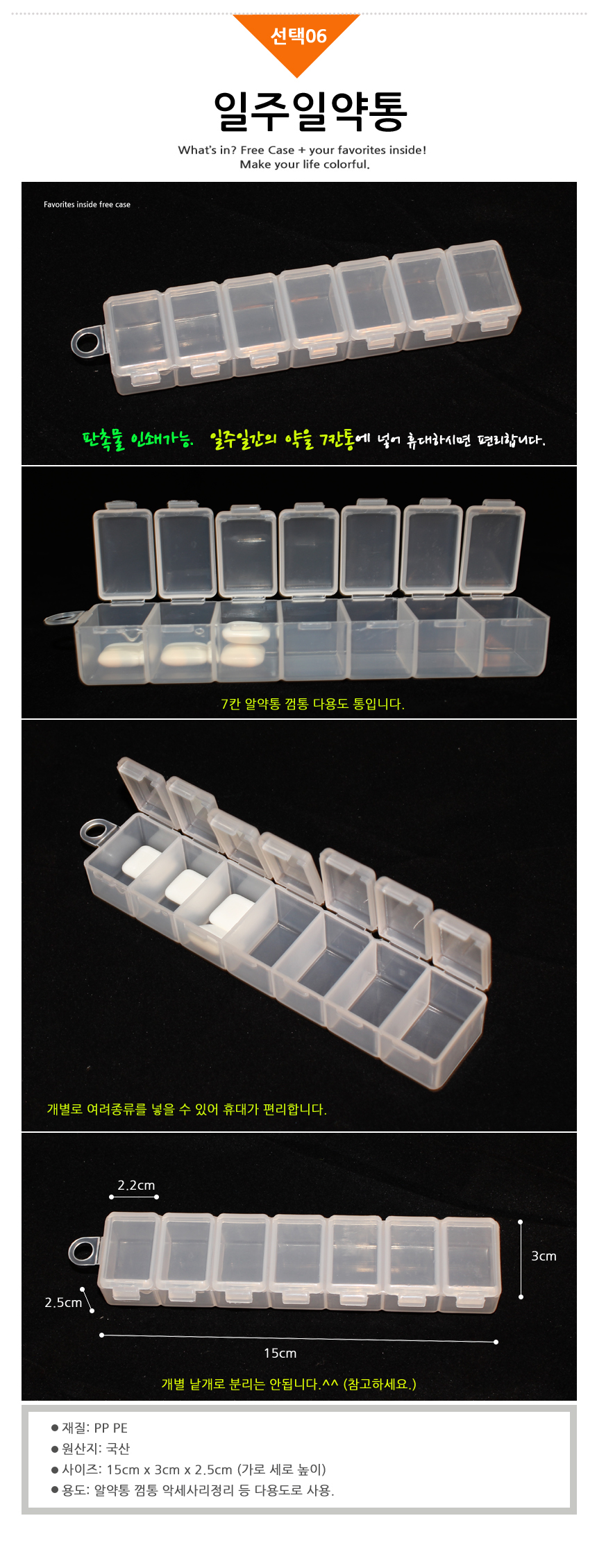 비타민 3단 분리형 약통/7칸 주간 약통 /밴드