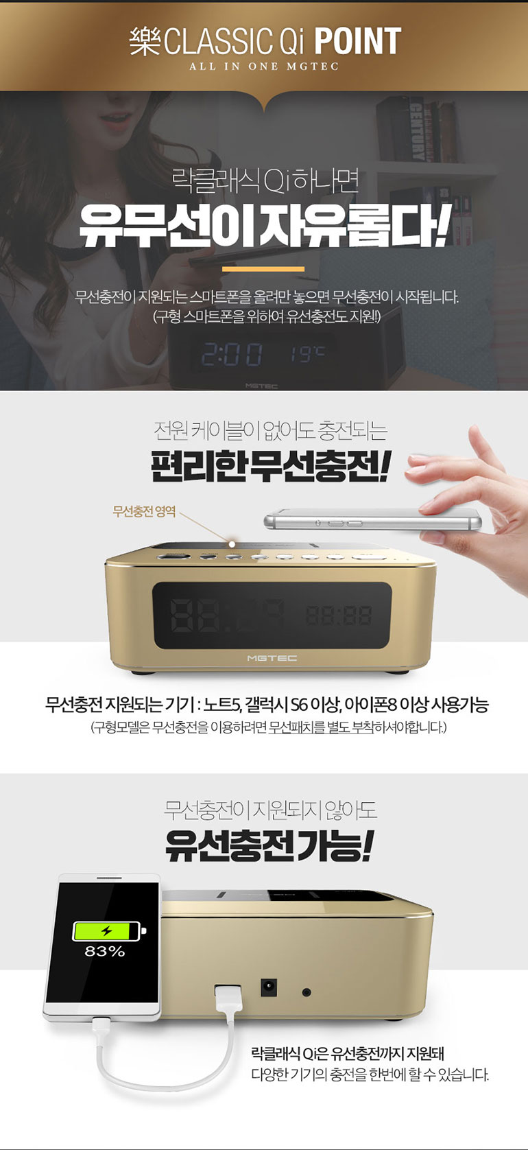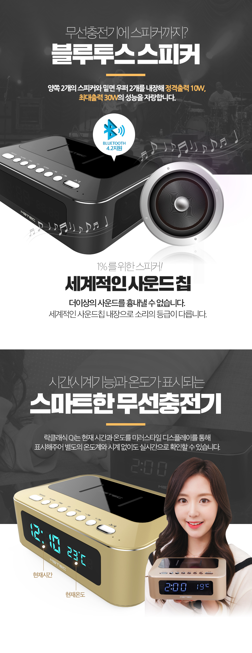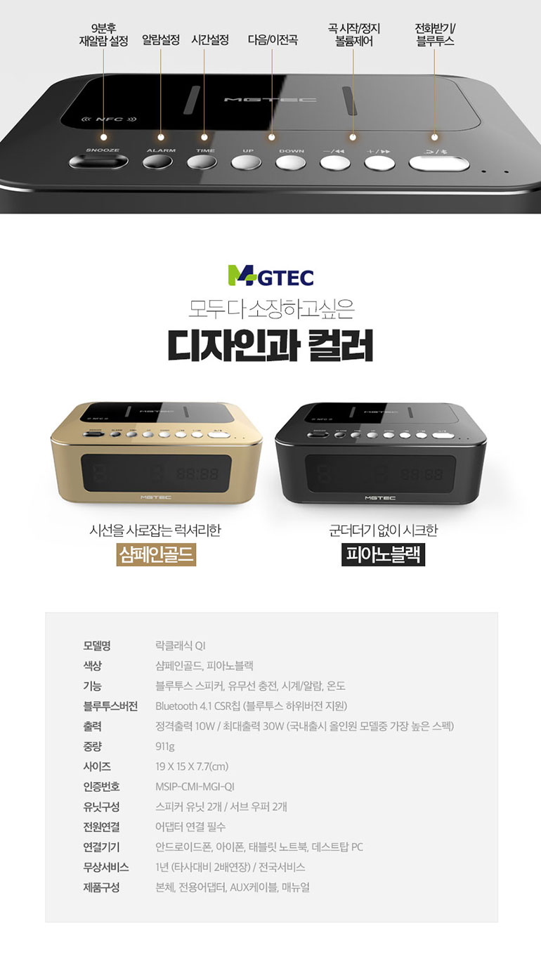 올인원 블루투스스피커/락클래식QI/무선충전가능/최대30