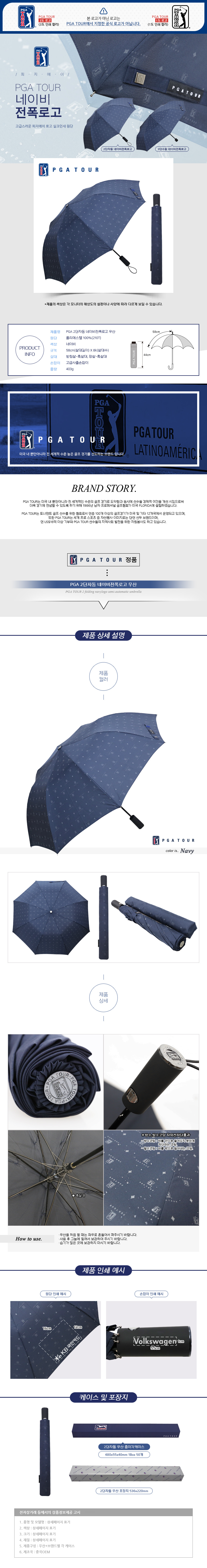 [2단우산]PGA 2단자동 네이비전폭로고 우산