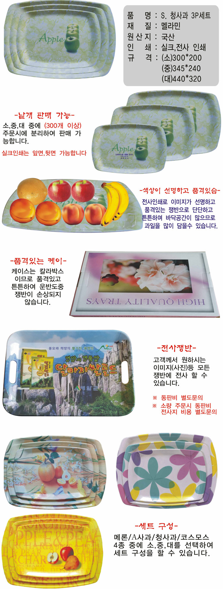 쟁반,메라민쟁반,S청사과 3P세트,메라민쟁반