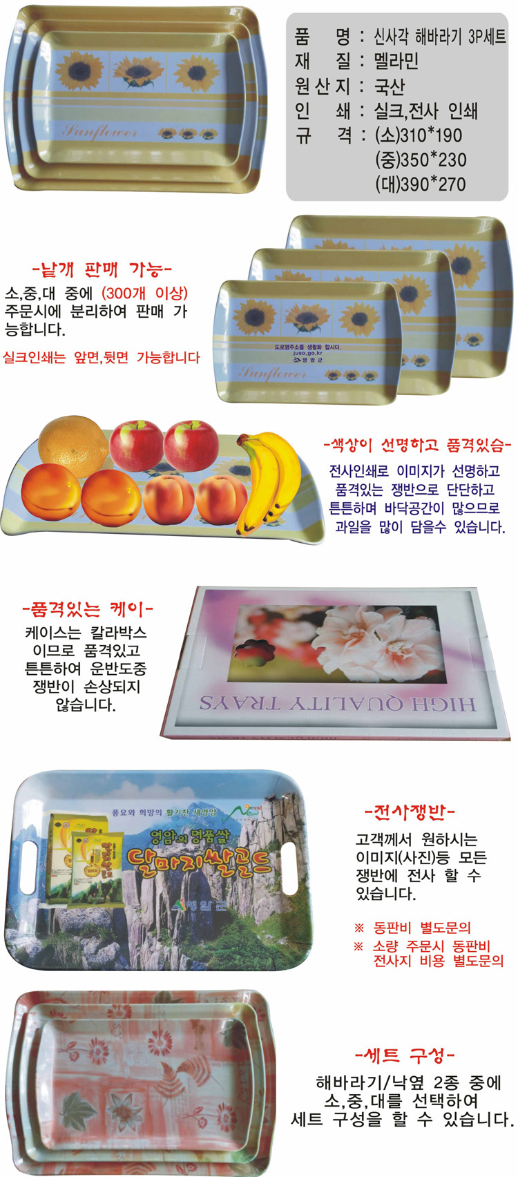쟁반,메라민쟁반,신사각해바라3P세트,메라민쟁반