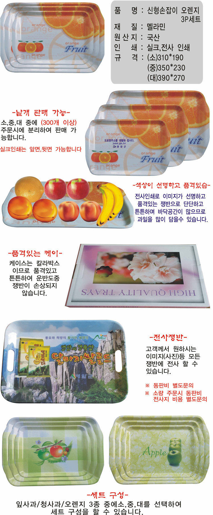 쟁반,메라민쟁반,신형손잡이오렌 3P세트