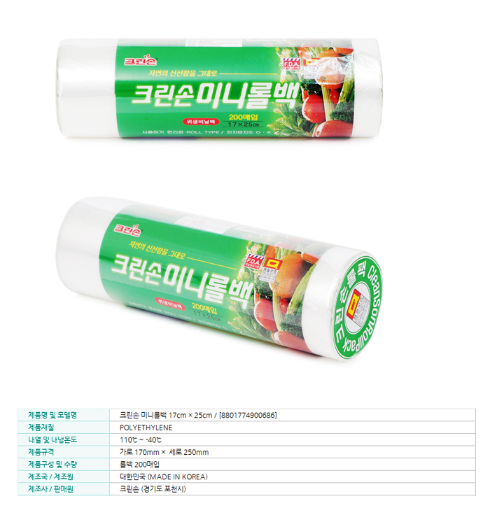 크린손 미니롤백200매