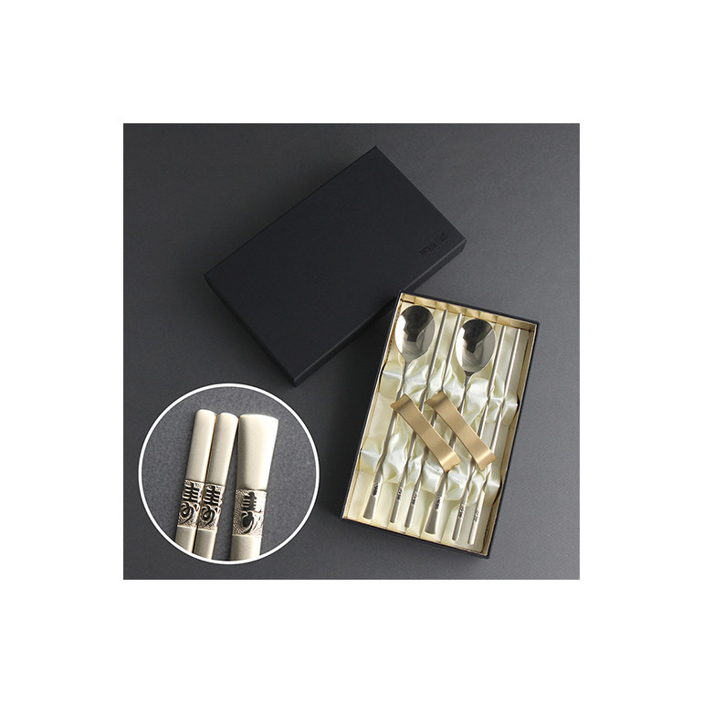 장수 골드 수저세트 (사각수저받침 포함)