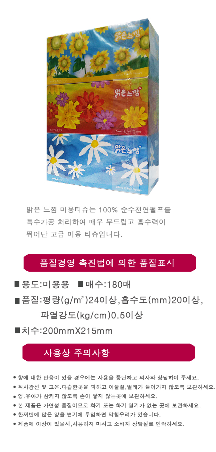맑은느낌 각티슈180매 3p