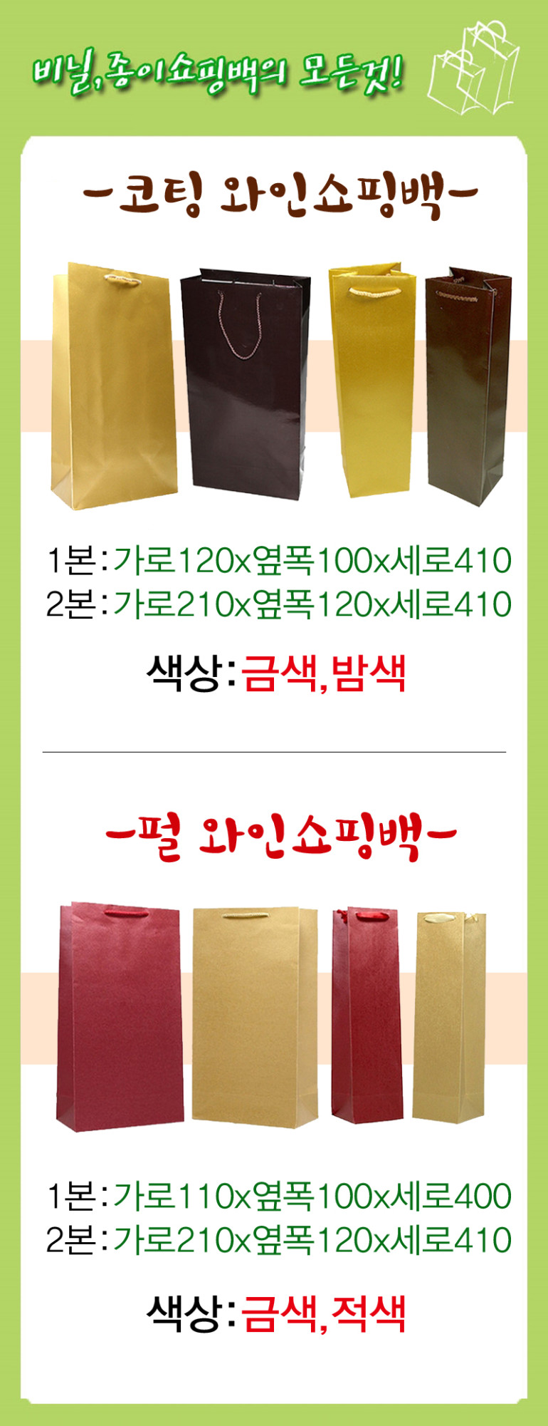 코팅 와인 종이쇼핑백(1본형-120*100*410mm)