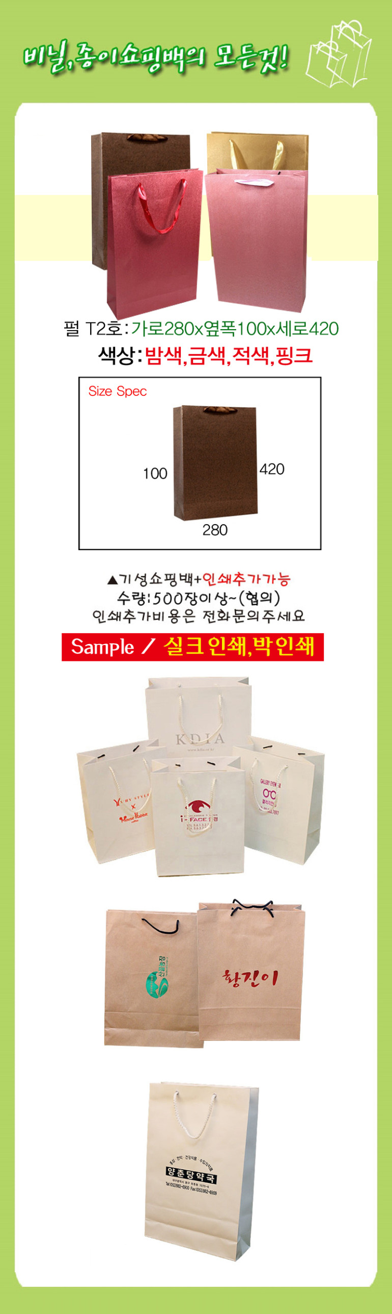 펄 종이쇼핑백 T2호-280*100*420