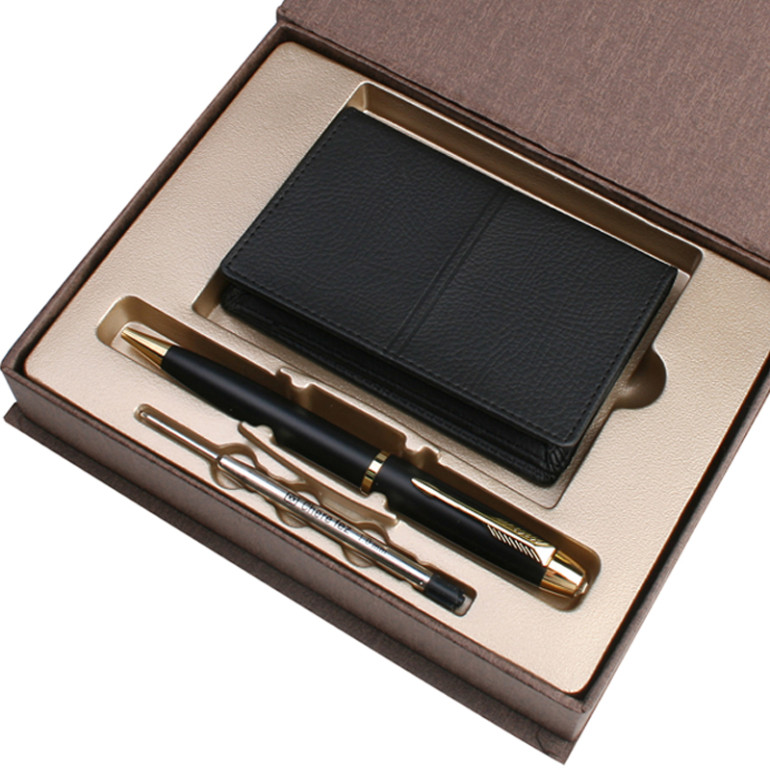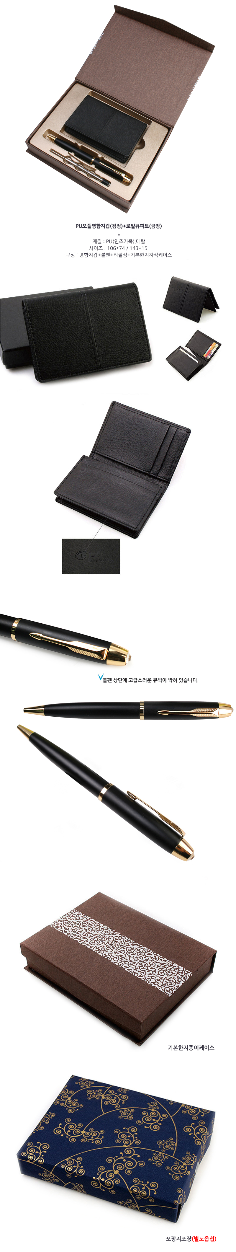 [볼펜세트/명함지갑세트] pu오플명함지갑(검정)+로얄큐피트펜(금장)