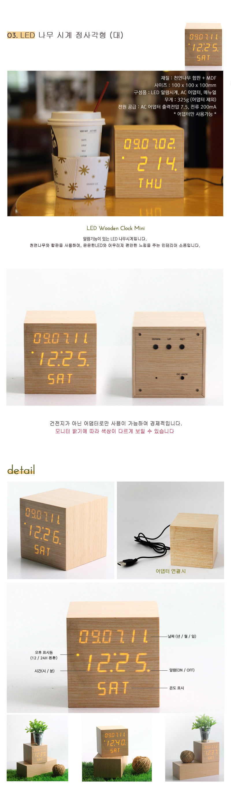 LED 나무 탁상시계 정사각형(대)