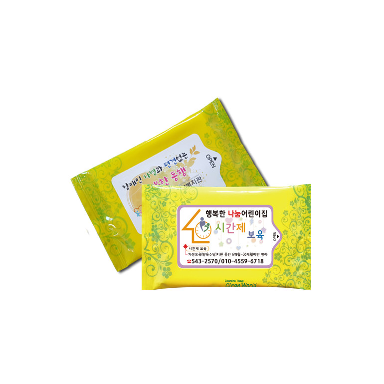 판촉용 노랑 물티슈 15매